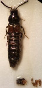 Ce staphylin fait également partie d’un groupe compliqué à identifier, et qui nécéssite une documentation conséquente pour sécuriser les identifications. Nous avons pu obtenir un couple, ce qui a permis de consolider notre diagnostique.